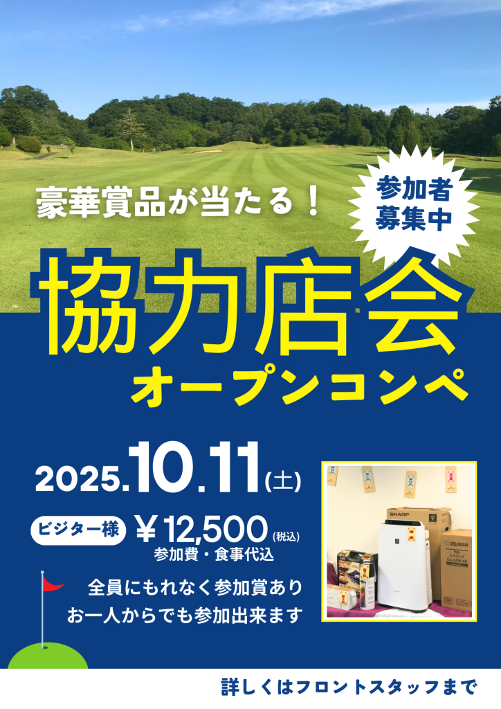 来る10月11日(土)に協力店会オープンコンペを開催いたします。