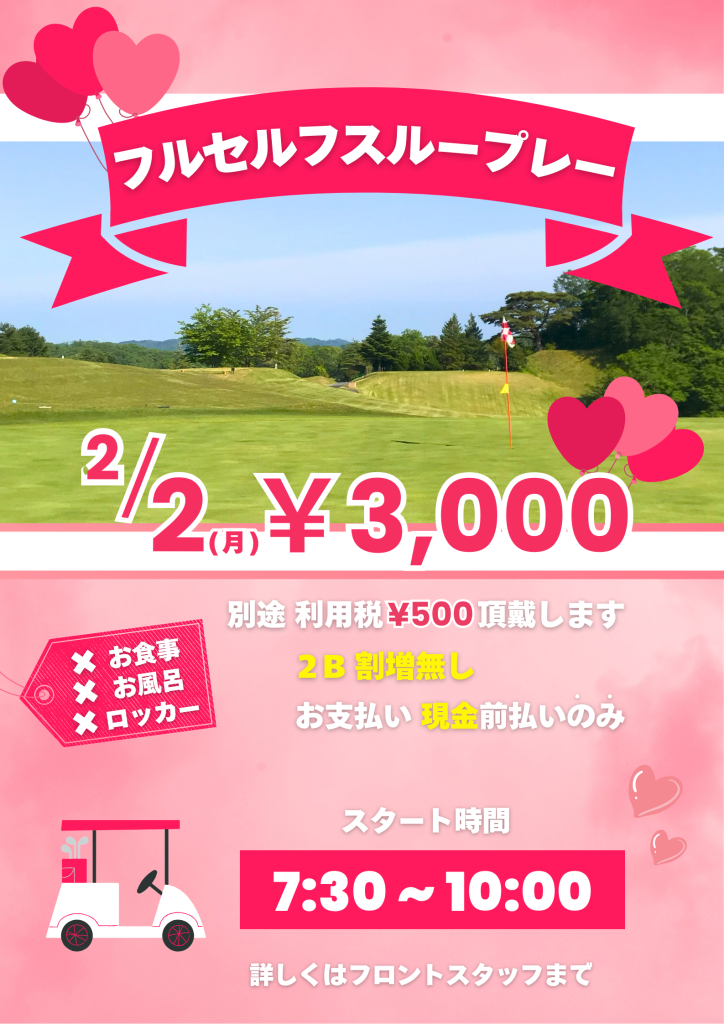 ○プレー当日は、お風呂、ロッカー、食事無しのプランとなります。